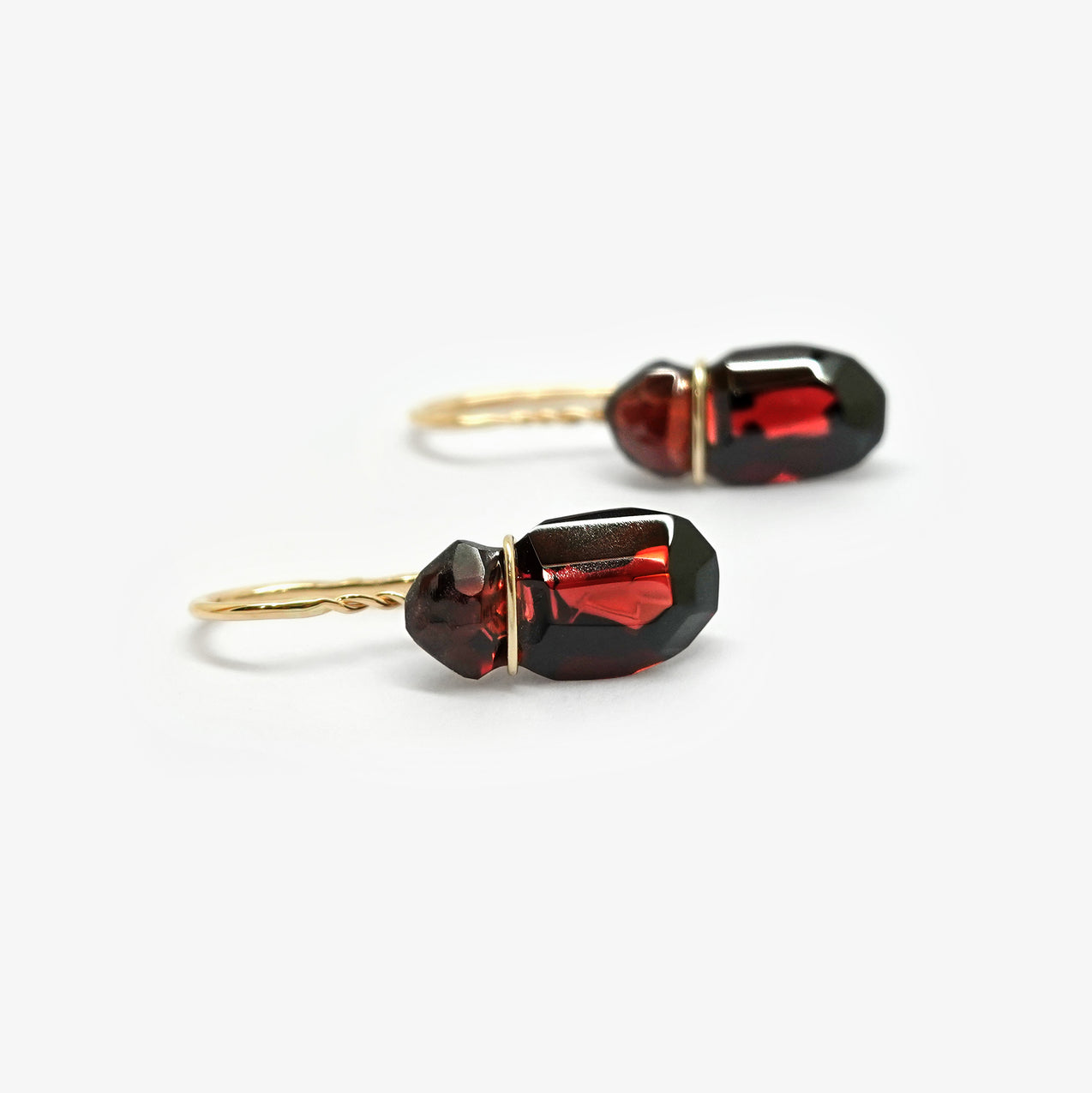 Hand cut Garnet gemstone & 14ct yellow gold earrings by Annette Ehinger