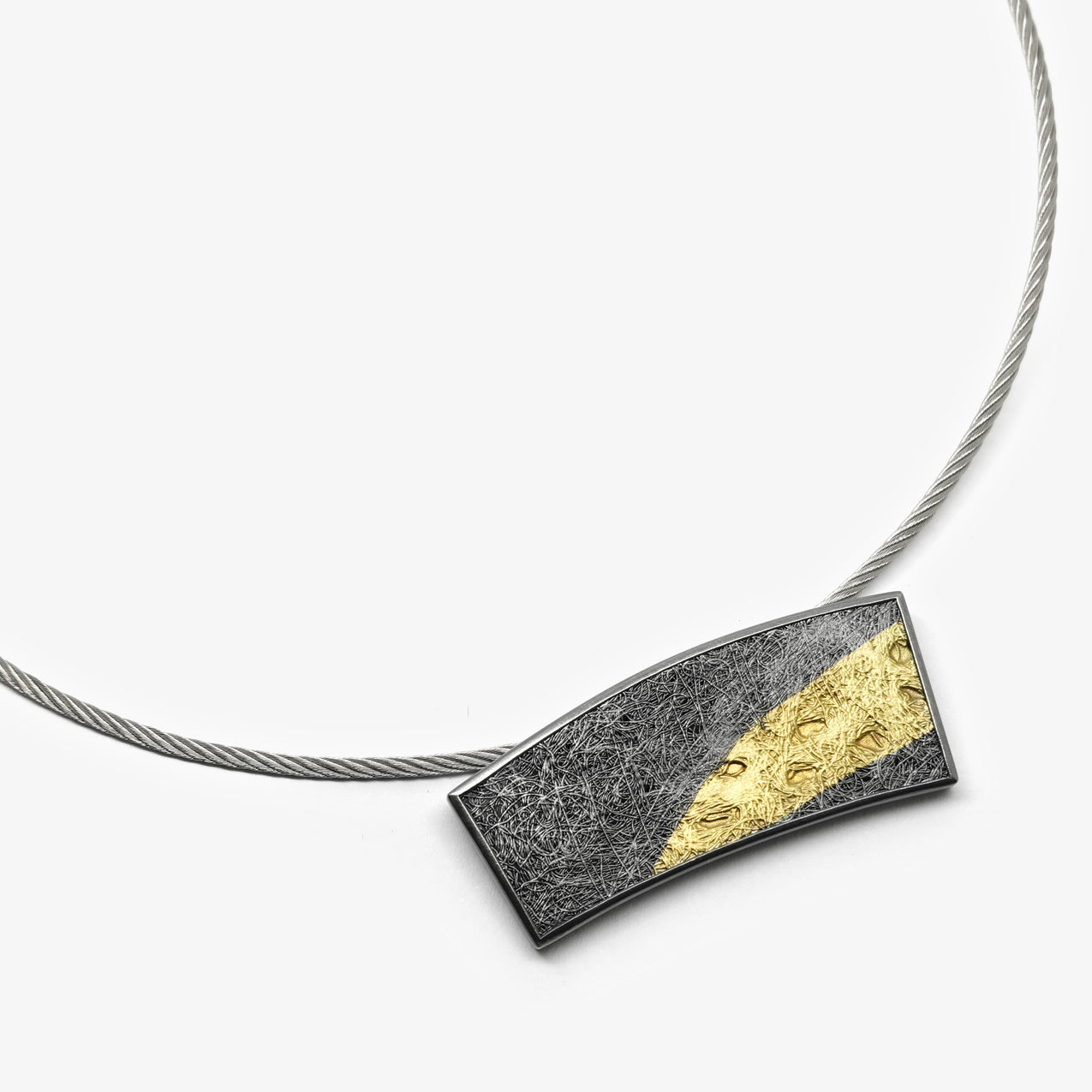 Black oxidised silver and yellow gold pendant necklace by Gill Galloway Whitehead